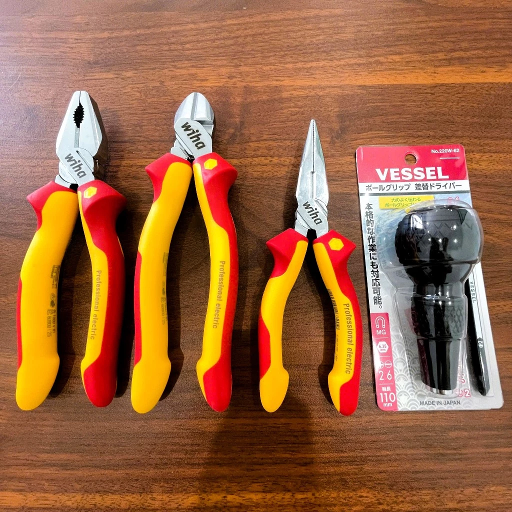 Bộ 3 kìm Wiha cách điện 1000V C02 (Wiha 26708, 43340, 26720 +Tặng tô vít 220w-62)