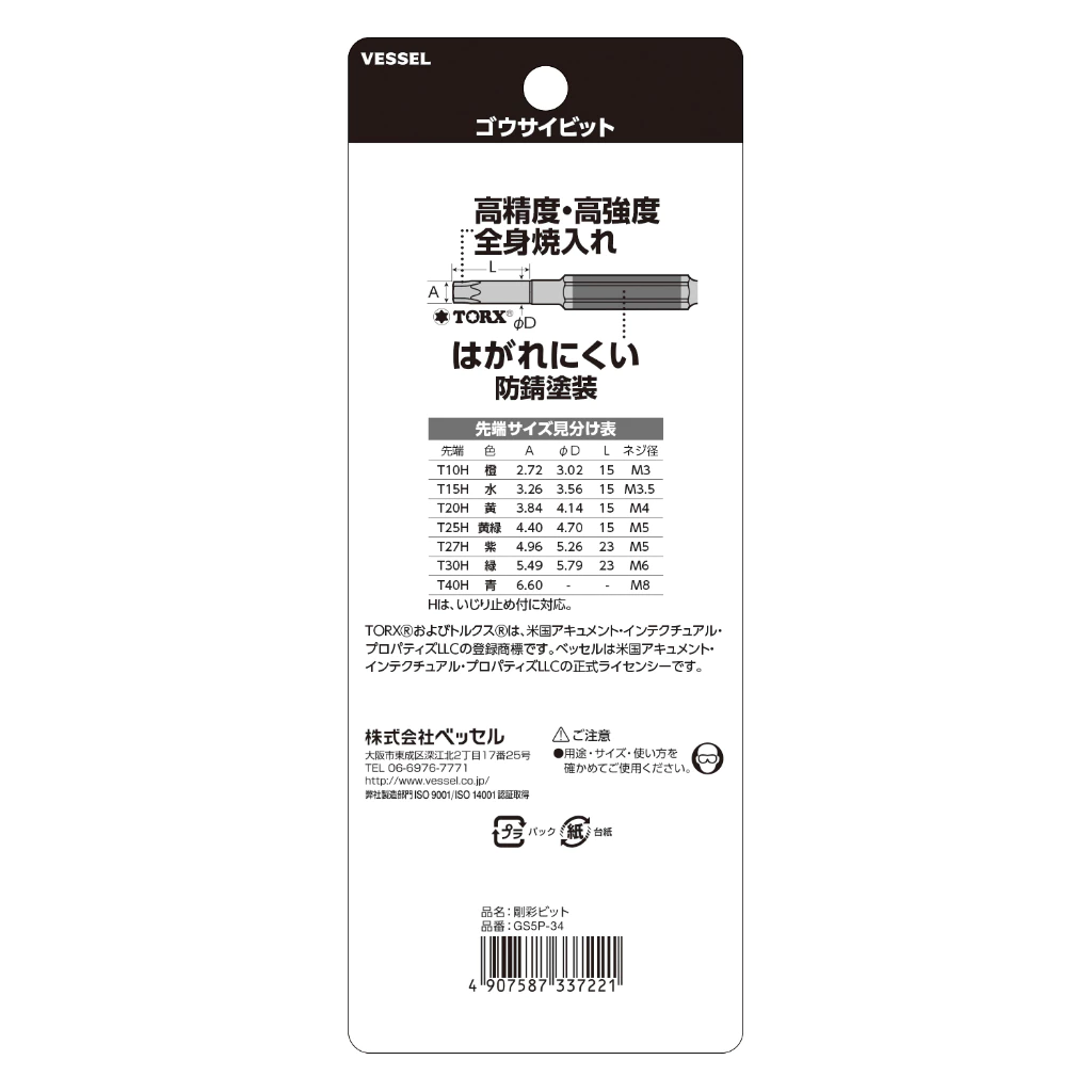 Bộ 5 mũi vít lục sao có lỗ GS5P-33/GS5P-34 Thương hiệu VESSEL Xuất xứ Nhật Bản I HCTOOLS